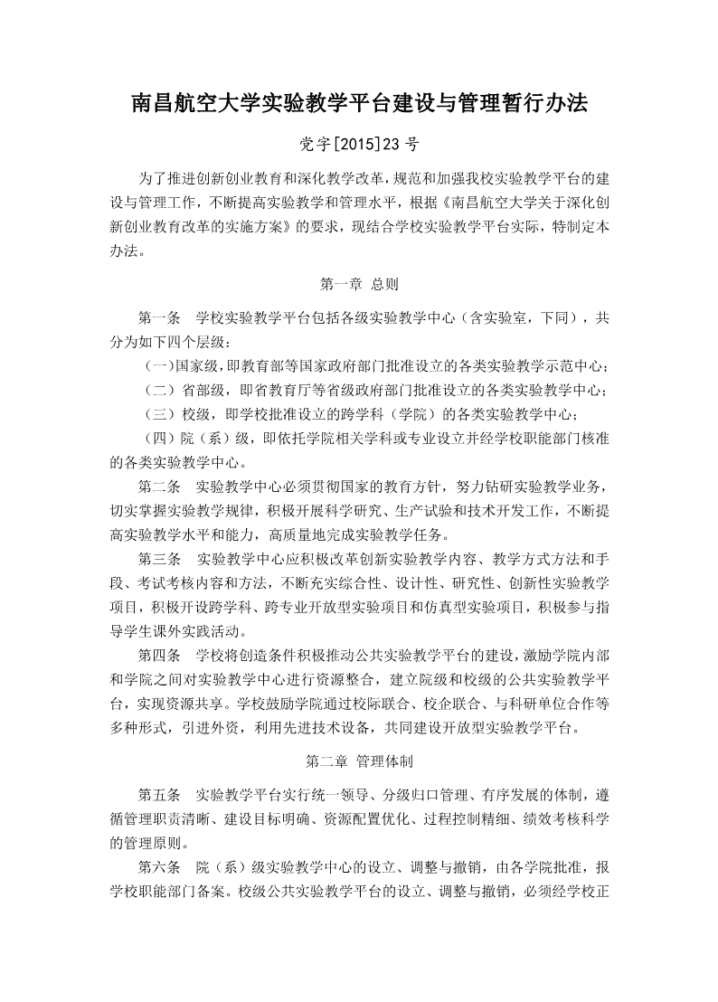 南昌航空大学实验教学平台建设与管理暂行办法-党字[2015]23号文(2)